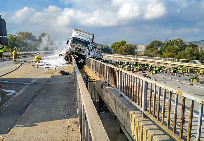 Hüseyin O. idaresindeki içki taşıyan tır, Susurluk-Bursa kara yolunun 10. kilometresinde Yaylaköy köprüsündeki demir korkuluklara çarptı.